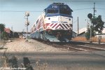 ACE Train arrives in Tracy California on Feb 27, 1998 for a preview display