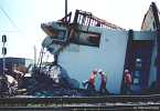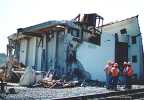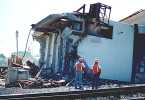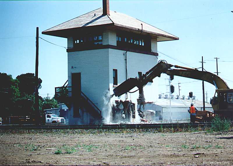 May 27, 1999 at 1050 PDT, the Stockton Tower was razed, I began railfanning the Tower area in 1990, I am at a loss for words as a historical Icon came down today. On hand to witness the event were 8 railfans, regulars at the Stockton Tower, no media was on hand to record the event for posterity.