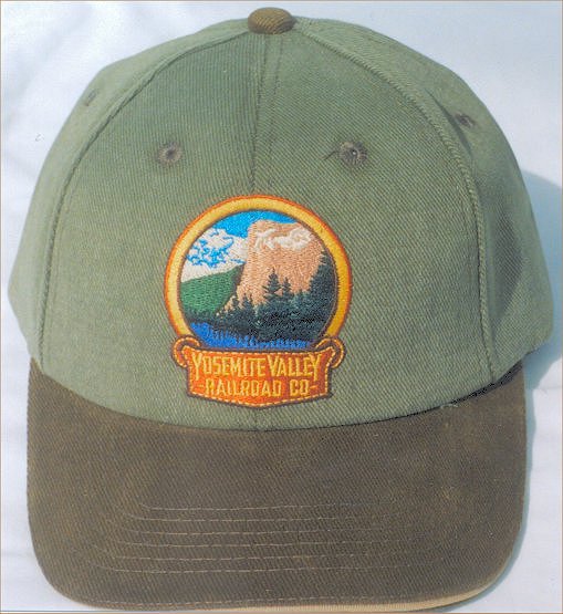 Yosemite Valley Railroad El Capitan Logo on front. Jalapeno beefy bull denim crown, sandwiched olive beefy bull denim bill.